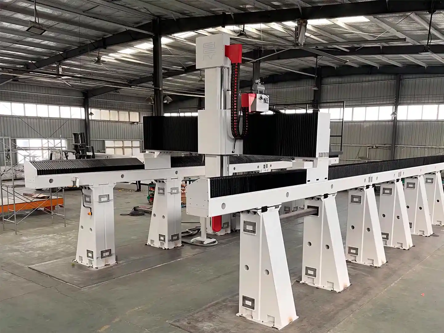 Ось Y: Перемещение также составляет до 25 метров. Это обеспечивает достаточную рабочую зону для обработки деталей больших размеров. Ось Z: Вертикальное перемещение по этой оси также доходит до 10 метров, обеспечивая глубокую обработку.