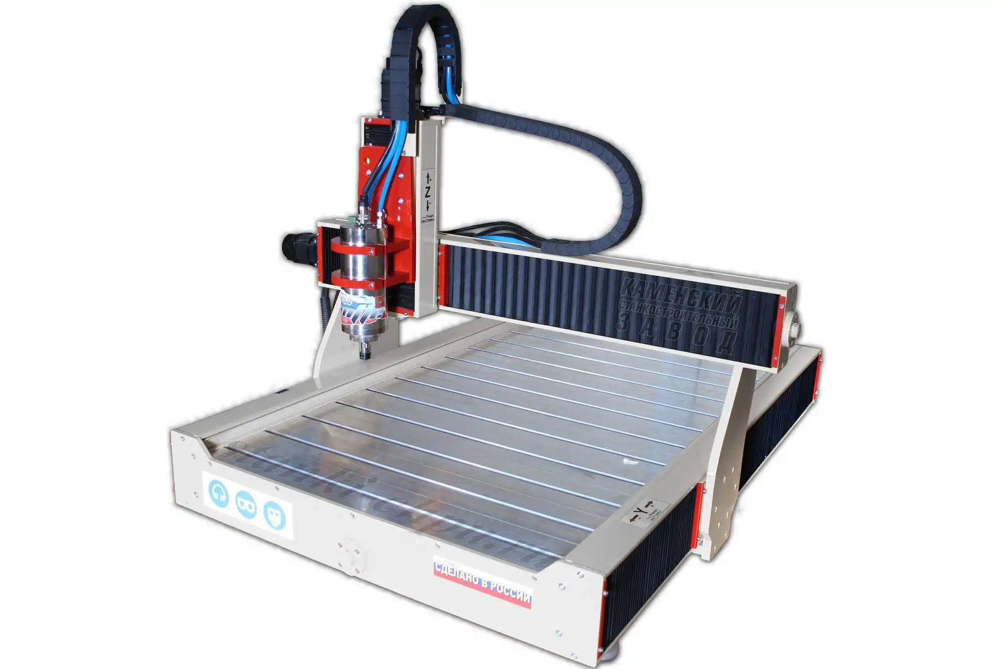 Большинство наших станков оборудованы системами автовыравнивания порталов. При каждом обнулении станка портал восстанавливает геометрию координаты. Также Завод устанавливает системы аварийной остановки станка при срабатывании защиты на шпинделе или контроллерах координат.